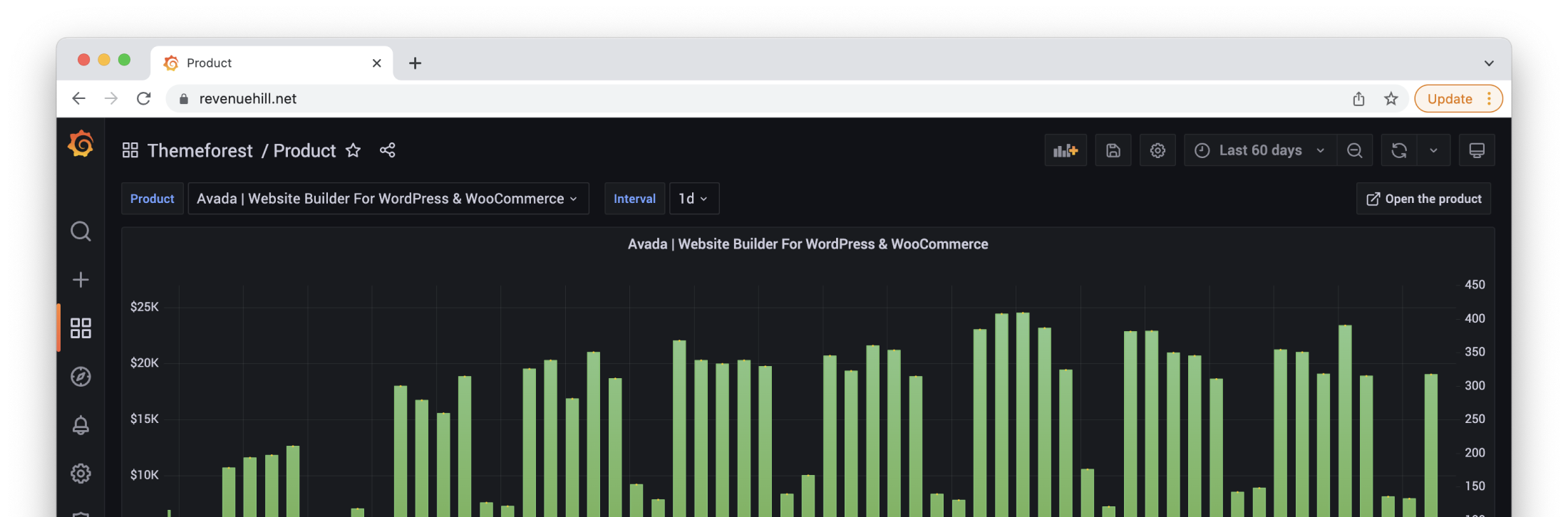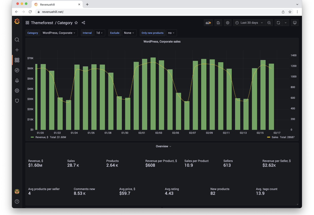 Revenuehill provides historical sales data on Themeforest and Codecanyon to help Envanto sellers find competitive insights